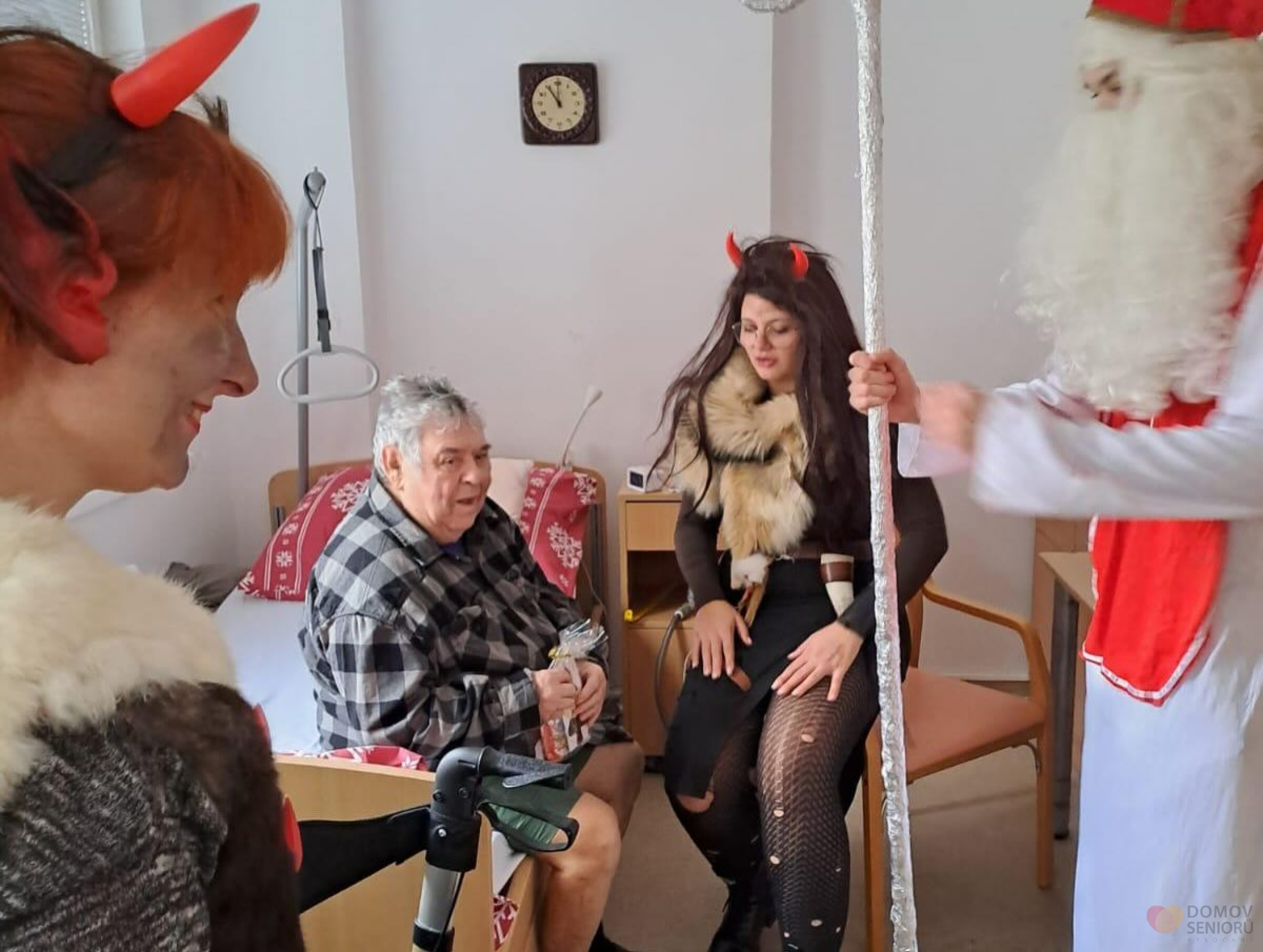 Aktivizační pracovnice se proměnily v Mikuláše, čerta i anděla a společně navštívily naše klienty, kteří dostali malé balíčky a užili si spoustu úsměvů. Celé dopoledne provázelo společné zpívání koled a krásná vánoční atmosféra.