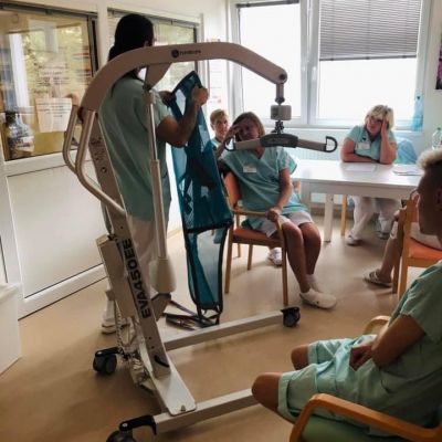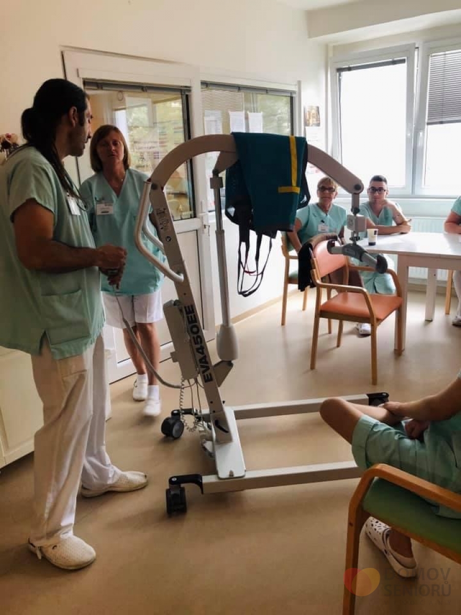 Jedná se o zvedací zařízení od firmy MSM značky Handicare. Při koupi jsme se účastnili školení ohledně správné manipulace se zařízením. Nás pracovník přímé péče nakonec proškolil i všechny své kolegy. Děkujeme všem zaměstnancům za ochotu.